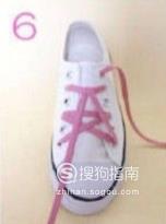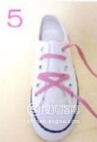 完成以上步骤之后就完成了五角星系法了,我们来进行收尾工作,将剩余的鞋带打一个蝴蝶结或其他的结。这样就完整的完成了一个五角星系法。