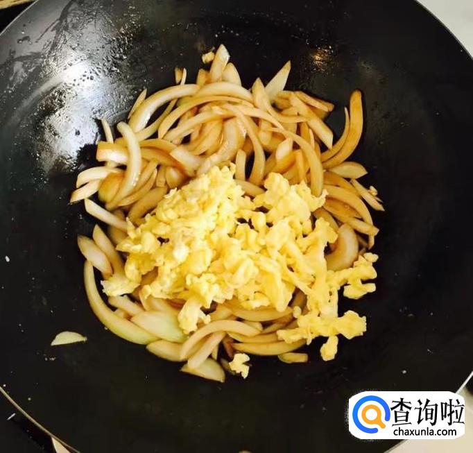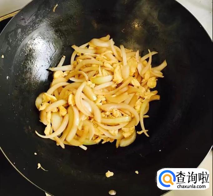 炒至洋葱断生后倒入炒好的鸡蛋再次翻炒均匀即可出锅