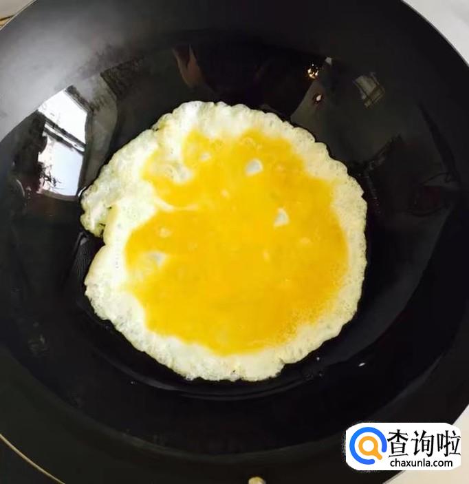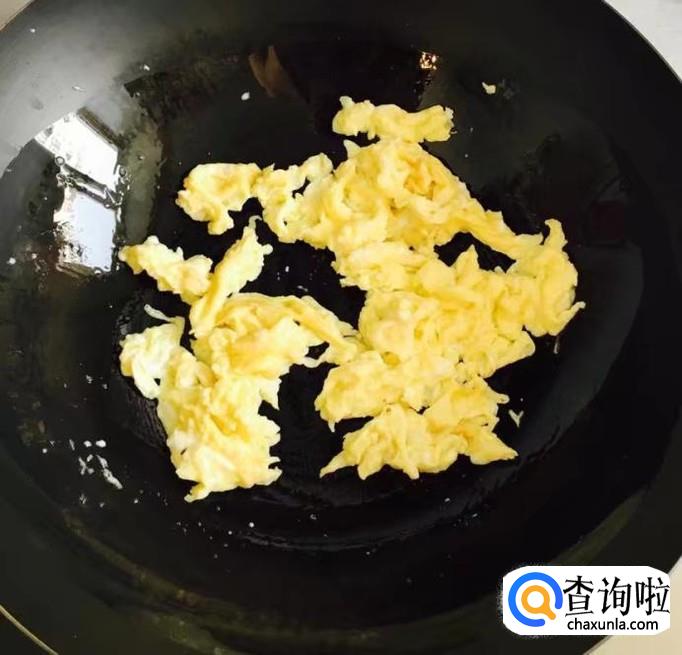 热锅加入适量的花生油倒入蛋液炒香后盛出备用