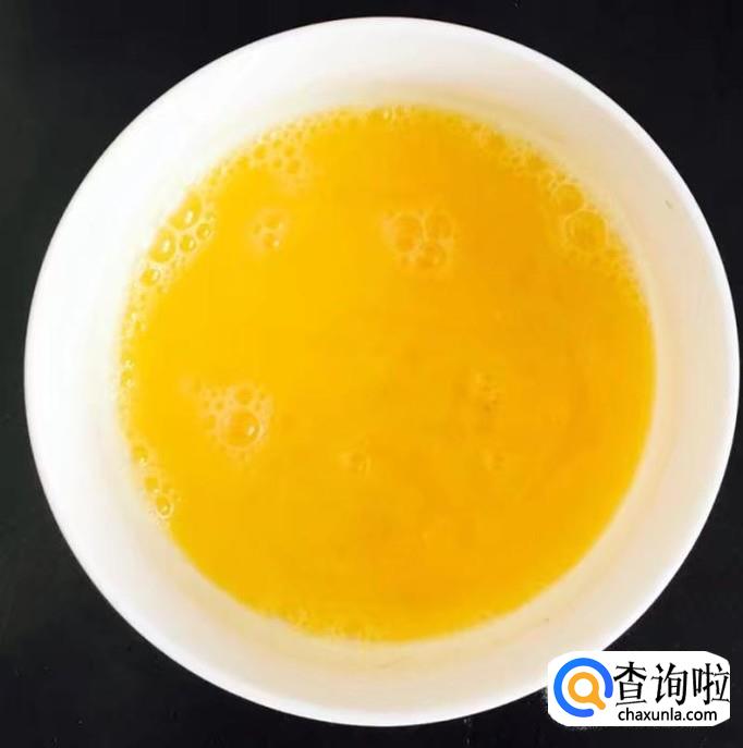 鸡蛋3个打入碗中加入适量的盐和料酒用筷子搅拌均匀成鸡蛋液