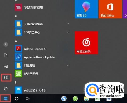 首先,我们点击电脑左下角的微软按钮,弹出的界面,我们点击设置;