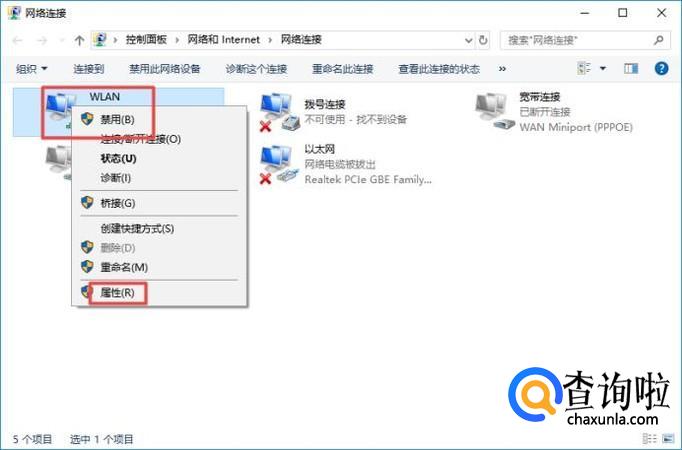 弹出的界面,我们右击我们连接的网络,弹出的界面,我们点击属性;
