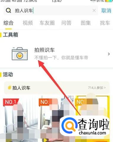 进入之后,点击图示位置搜索“拍人识车”,如图所示。