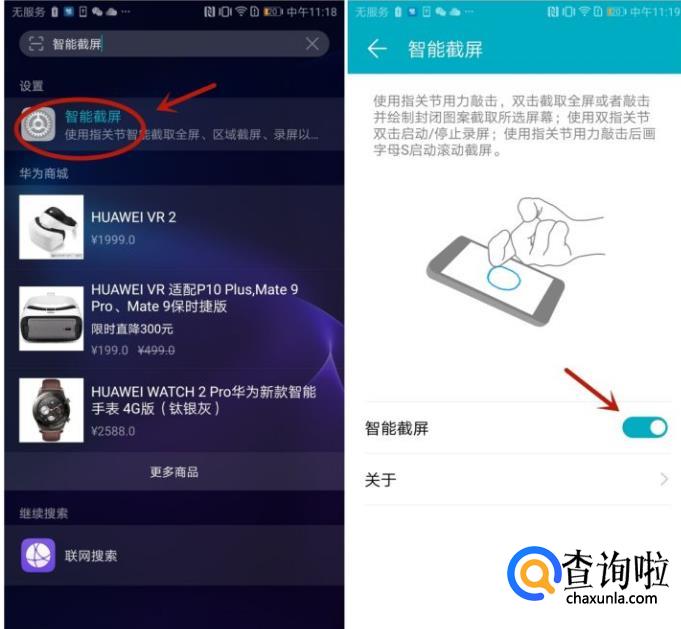 打开之后就可以试着用指关节截屏了。总共分为三种方式截屏。