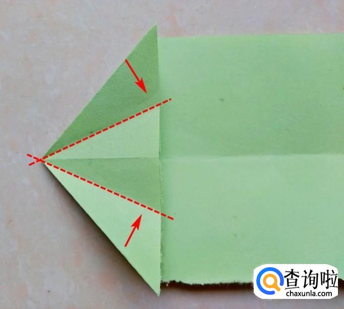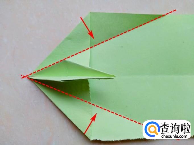 尾部打开,两个角向中间折叠,形成一个尖角;