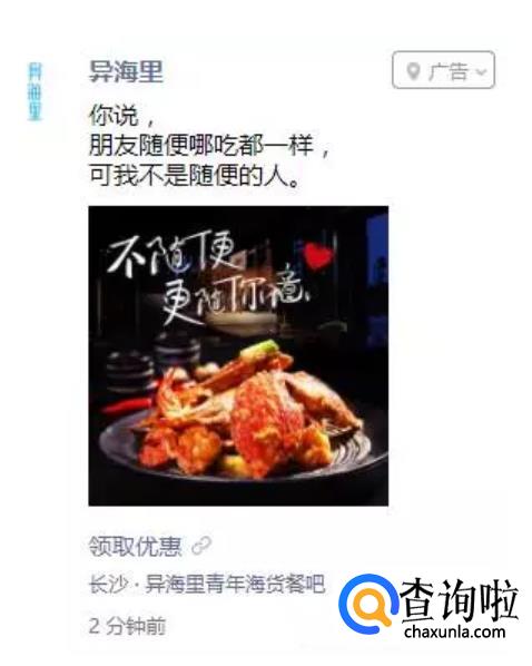 微信朋友圈广告是在微信朋友圈展示,外形就像真的朋友圈广告那样的原生广告。用户可以通过点赞、评论等方式进行互动,按曝光次数计费。值得一提的是,有一种微信本地朋友圈广告特别适合中小企业投放,它精准定向周边3-5公里人群,无论新店开业、促销、新品上市、会员营销,都比较适合做这种广告。