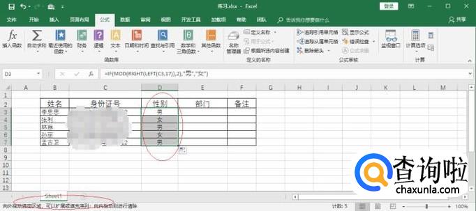 EXCEL表格身份证号码自动填写性别公式