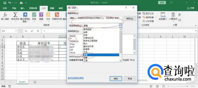 如图所示,弹出下拉列表选项。选择"逻辑→选择函数→IF"函数,设置完成点击"确定"按钮。