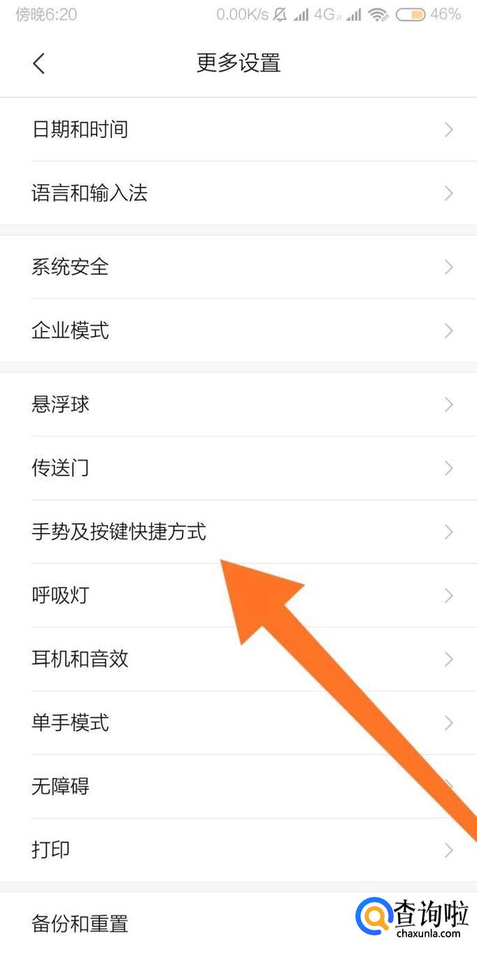 继续找到“手势及按键快捷方式”设置选项,点击进入。