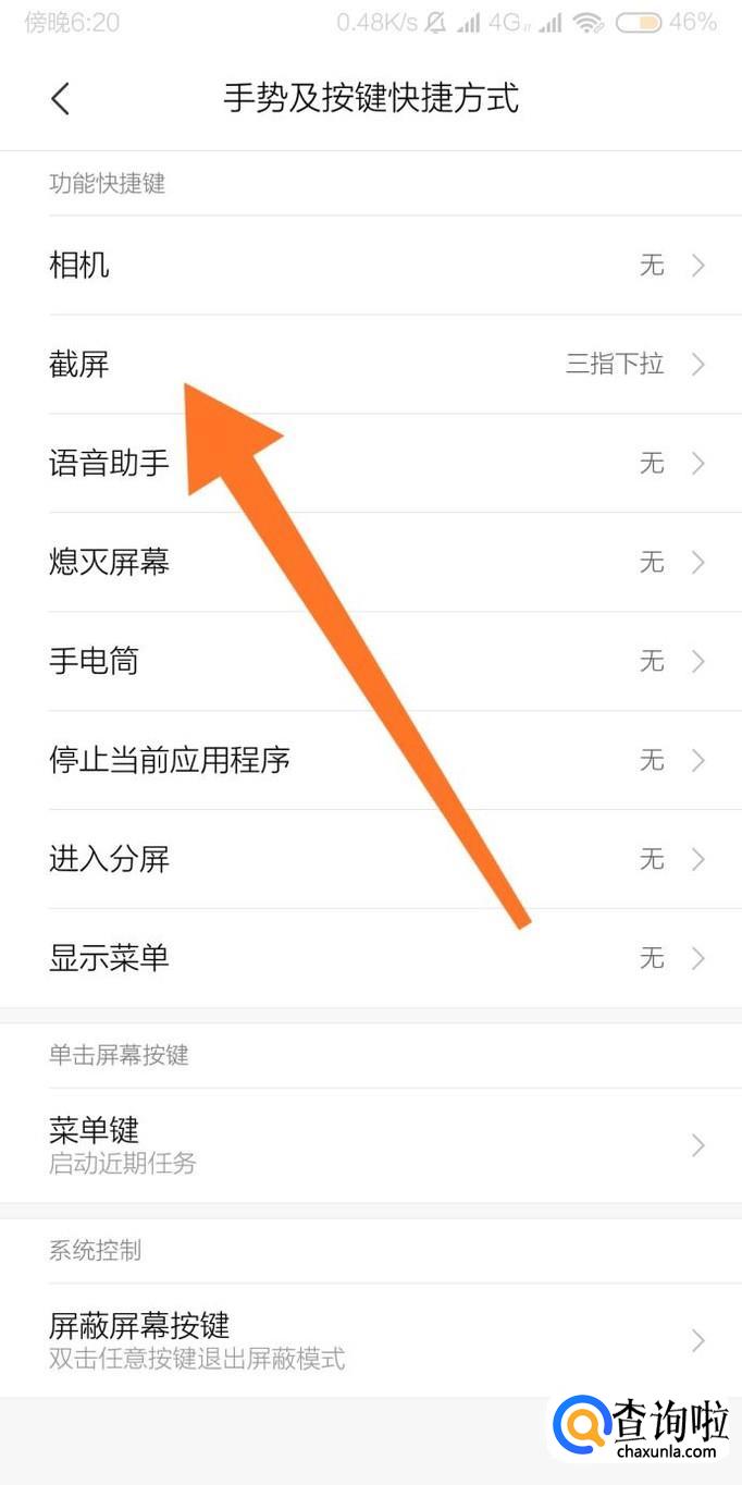 接着点击进入“截屏”设置选项。