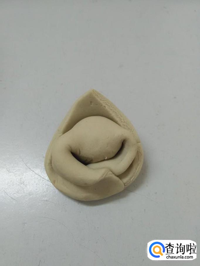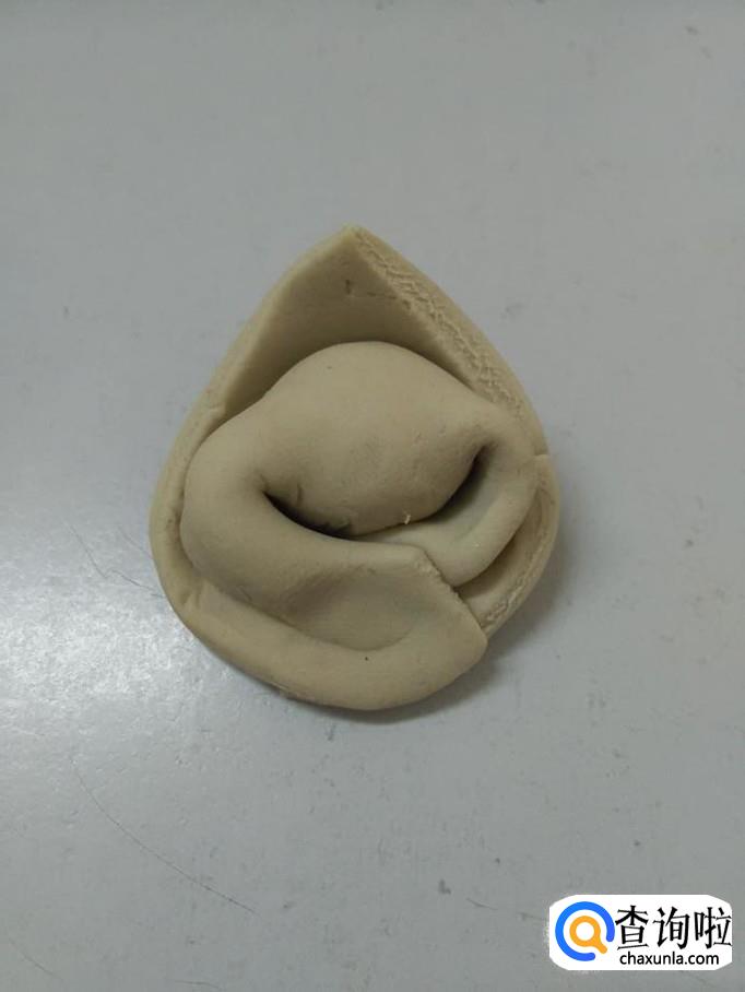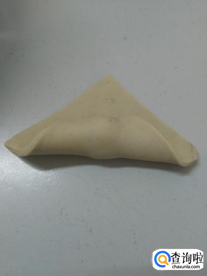 用左右两只手捏住左右两边的开口,捏严实,然后两个角向下面圈起来,重叠在一起,用手捏在一起,一个馄饨就包好了。