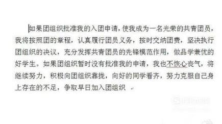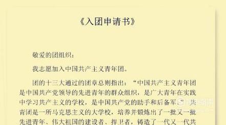 首先映入眼帘的必须是“入团申请书”这几个字,若是手写的话建议用黑色中性笔,能让字体看起来很漂亮,若是打字的话,建议以宋体为主。