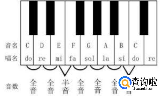 在音乐中,相邻的两个音之间最小的距离叫半音,两个半音距离构成一个全音。 把C D E F G A B 这一组音的距离分成十二个等分,每一个等分叫一个“半音”。两个音之间的距离有两个“半音”的 ,就叫“全音” 。在钢琴、电子琴等键盘乐器上,C-D,D-E,F-G,G-A,A-B,两音之间隔着一个黑键,它们之间的距离就是全音;E-F,B-C,两音之间没有黑键相隔,它们之间的距离就是半音。