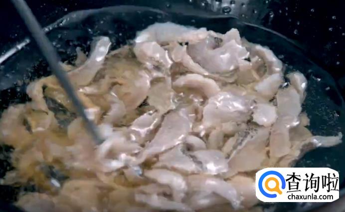 接下来,将鱼片倒入锅里,轻轻搅动。转至小火,直到鱼片从油锅中浮起,定型即可捞出。