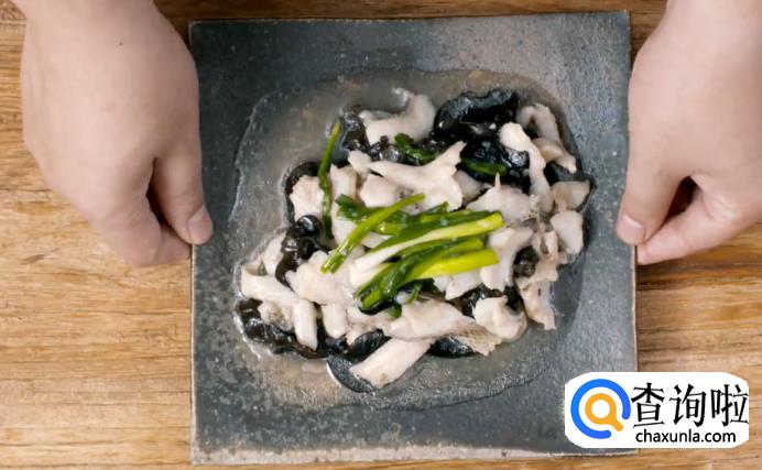 木耳、生粉、葱、盐、糖、水、料酒、糟卤、食用油 适量