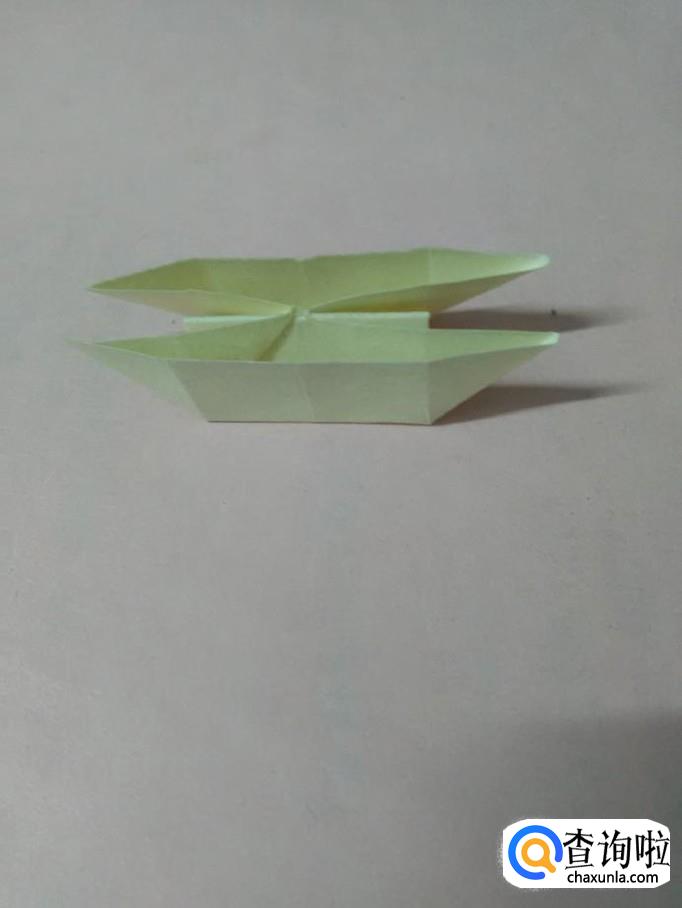 把下面中间的两个角向两侧打开,按平,就是一只小船。