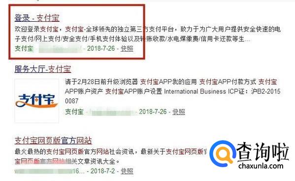 然后输入支付宝网页版并点击回车键,如下图所示。