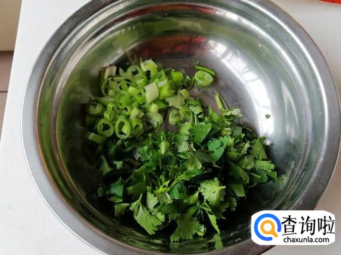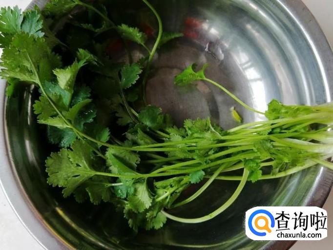 适量葱洗净切碎待用,干红辣椒洗净切好待用,我这里还准备了点香菜,大蒜做好菜后放,既可以提味还可以做点缀,当然不喜欢香菜的可以不放。
