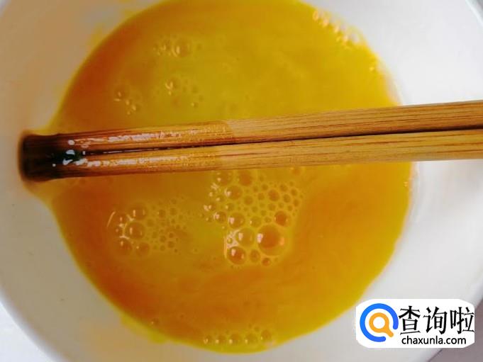 选用两个新鲜的鸡蛋,用清水先把鸡蛋洗净,洗好后,鸡蛋磕入碗中,用筷子搅拌把鸡蛋打散待用,吃饭人数多的话可以多一个鸡蛋。