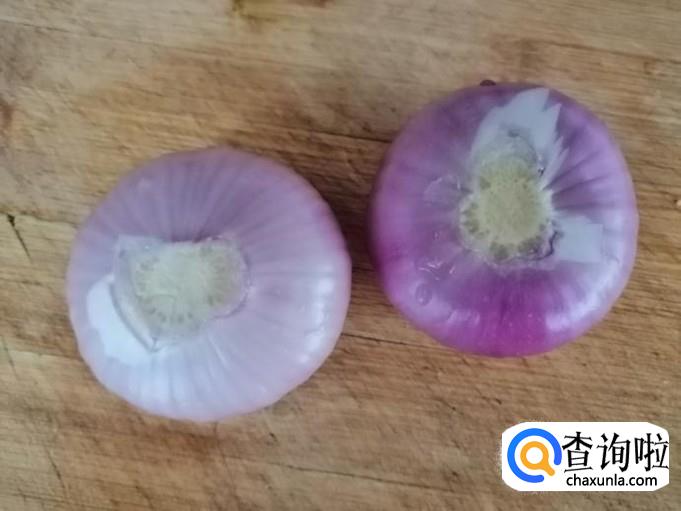圆葱个头大的话一个就可以,个头不大的话就选用两个新鲜圆葱,用刀切掉两头扒皮,用清水洗净放在菜板待用。