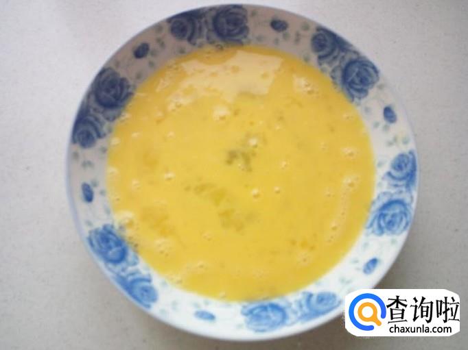 鸡蛋打入盘中,搅拌成鸡蛋液。