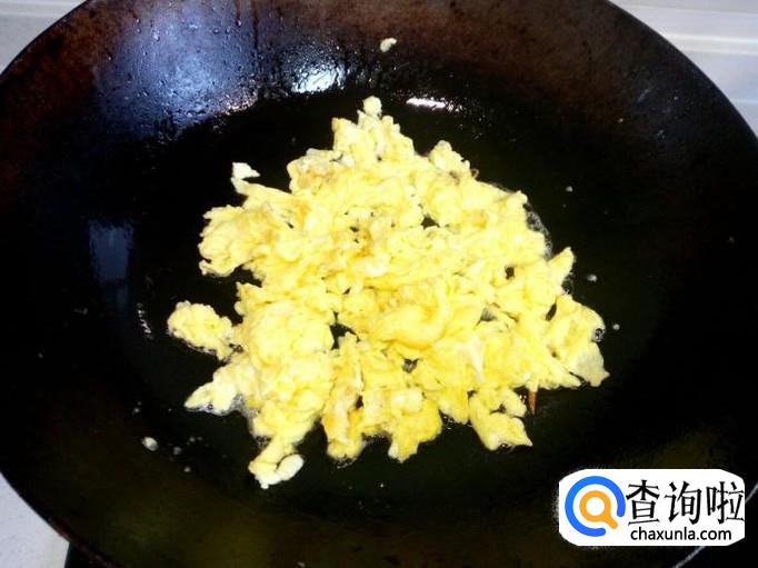 用锅先把鸡蛋炒出来,炒至七分熟,盛出备用。