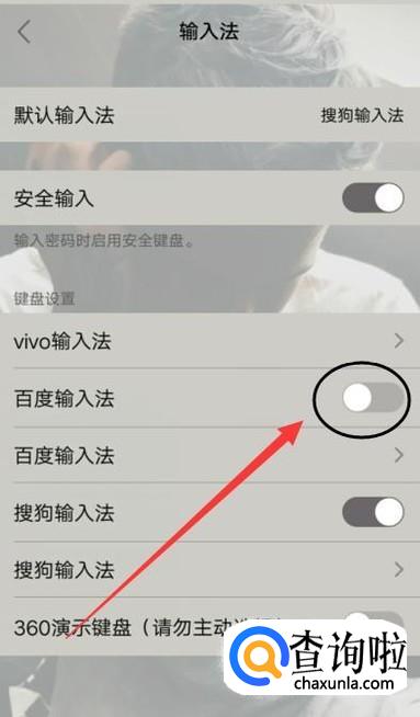 进入之后,将图示位置按键打开即可使用百度输入法,如图所示。