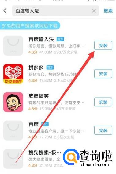 进入之后,在图示位置搜索百度输入法,如图所示。