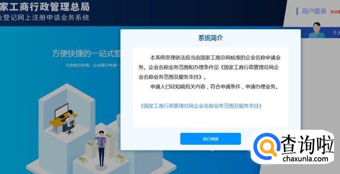从企业登记网上注册业务系统官方网站进去,我们看到首页里有国家工商行政管理总局的声明。这个网站的网址最后是以.gov.cn结尾,说明是中国的政府部门的网站,是安全的。