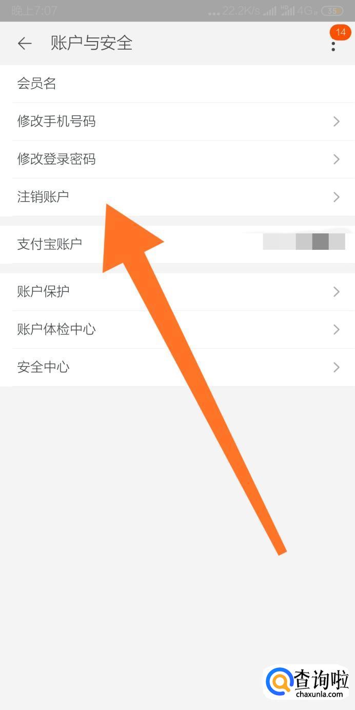 继续点击“注销账户”选项。