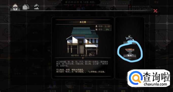 点击进入木工房后有一个“制木”的选项,单击鼠标进入