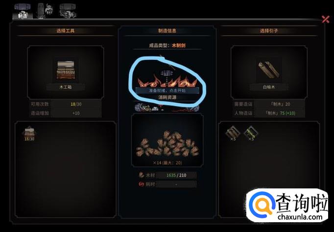 制作∶在太吾村的界面选择制作的场所,要制作金属器具点击进入火炼室,要制作木制器具进入木工房,这里以木工房为例