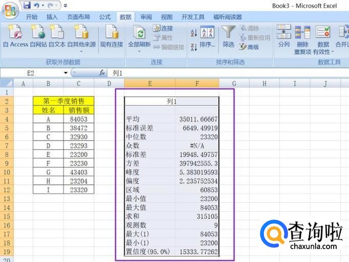 office2007 Excel如何用描述统计对数据进行分析