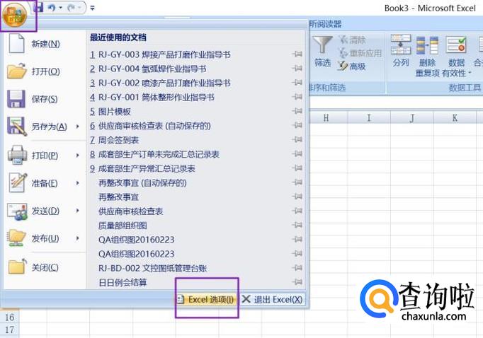 然后我们点击左上角的office按钮,弹出的界面,我们点击Excel选项;