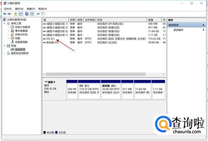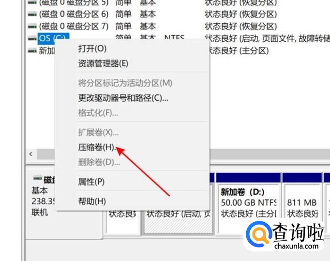 点击你想利用它来分区的磁盘,也就是C盘(新电脑只有这一个系统盘),然后右键出现弹出式菜单,点击压缩卷。
