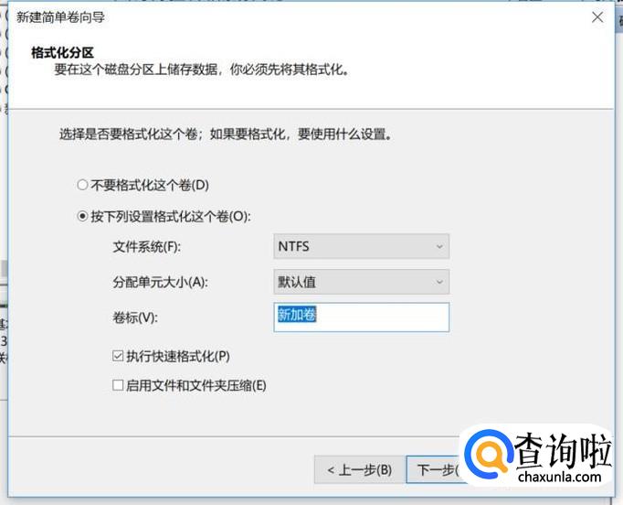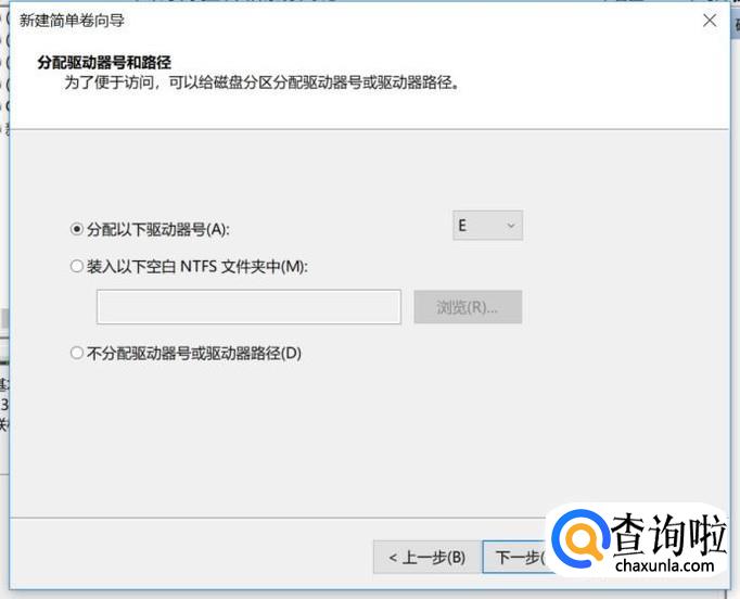 右边的下拉式菜单可以选择你的新磁盘的名字,比如E盘。点击下一步,还可以设置新磁盘的卷标。