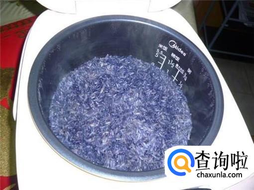 然后将染黑的糯米放入电饭煲,并倒入一定量的南烛叶汁水,开始蒸煮,等到糯米饭成熟,乌米饭就做好了。