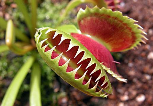 捕蝇草,听名字都知道,是一种可以吃掉昆虫的植物,在不少电影里,捕蝇草是以食人花的样子出现,但世界上捕蝇草不可能吃掉人类。原产于北美洲的一种多年生草本植物,具有捕食昆虫的习性,是世界上最毒的植物之一。捕蝇草的叶缘部份含有蜜腺,会分泌出蜜汁来引诱昆虫靠近。当昆虫进入叶面部分时,叶子会快速的闭合将昆虫夹住,刺毛就紧紧相扣交互咬合,防止昆虫脱逃。