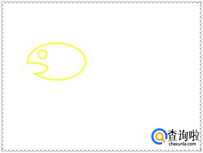 在眼睛的右侧画出画出一个半圆,这样看上去就是一个鱼头了。如图所示。