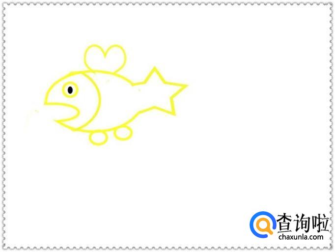 在鱼背部画出一个心型的鱼鳍和黑色的眼珠,如图所示。