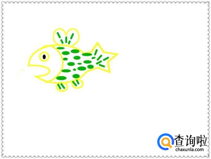 在鱼头的右侧再画出一个鱼尾巴,如图所示。
