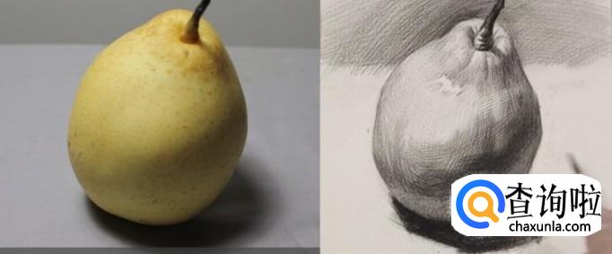 处理梨身的整个部分,暗部用铅笔抹匀,沟壑出用线条勾勒出来