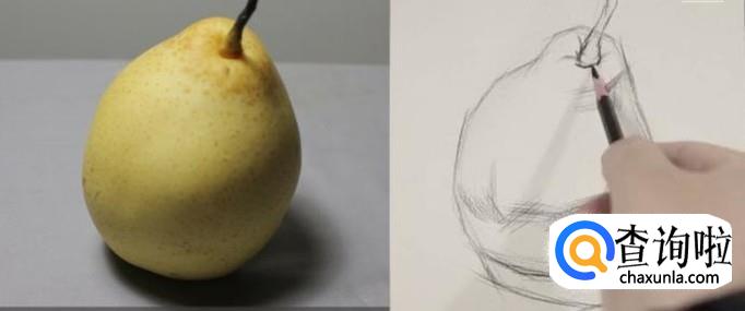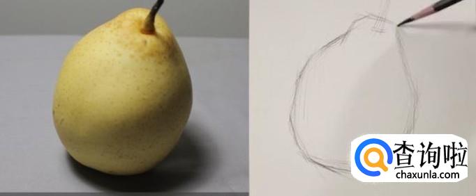 首先,在素描本上画出一个梨的轮廓,如下图所示
