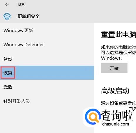 在“更新和恢复”界面下点击“恢复”,然后再高级启动下面点击“立即重启”。