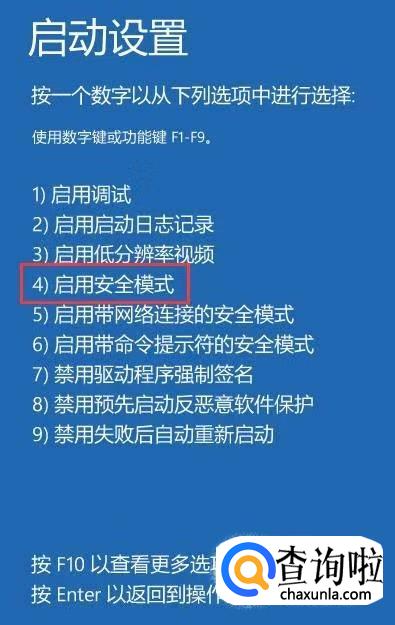 电脑此时会重启,重启后会看到如下图所示界面。按一下“F4”键或数字“4”就选择的是安全模式。其他的模式也是使用这个方法选择,选择以后会直接进去。