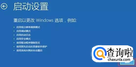 在高级选项中点击“启动设置”,点击“重启”按钮。