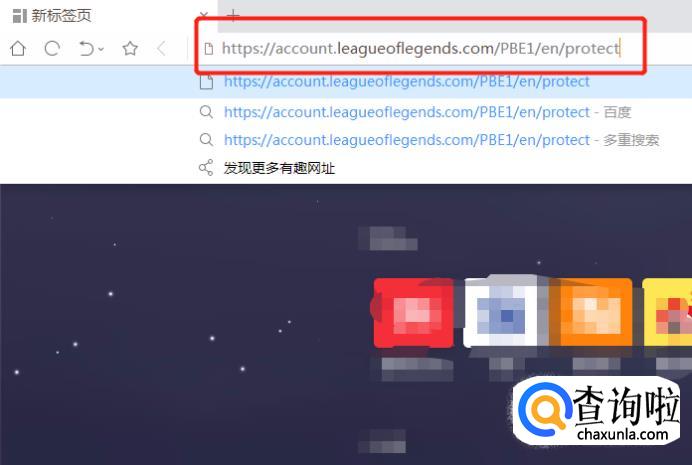 首先打开任意浏览器,输入网址https://account.leagueoflegends.com/PBE1/en/protect,此网站是LOL美服官网。