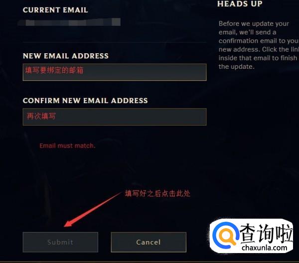 确认之后,会要求再填写一次邮箱。填写好之后点击Submit。