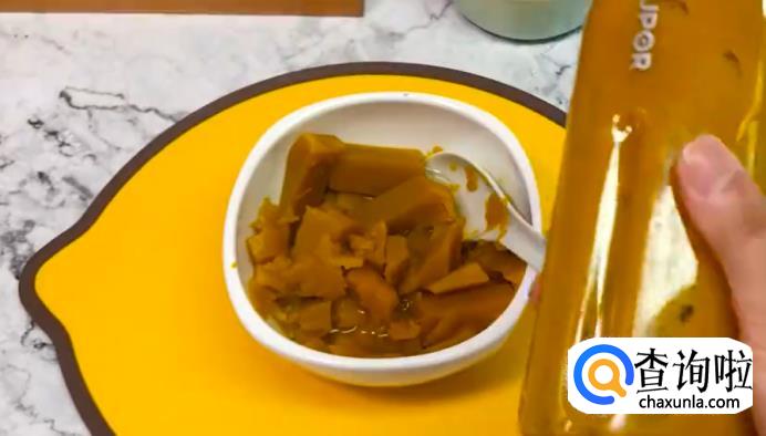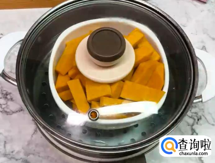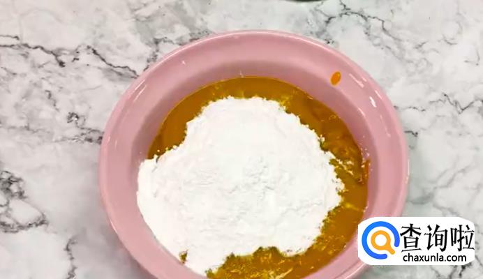 将适量的糯米粉加入南瓜泥里,如果不确定加入多少糯米粉,就一次少量加,直到南瓜泥不粘手为止。