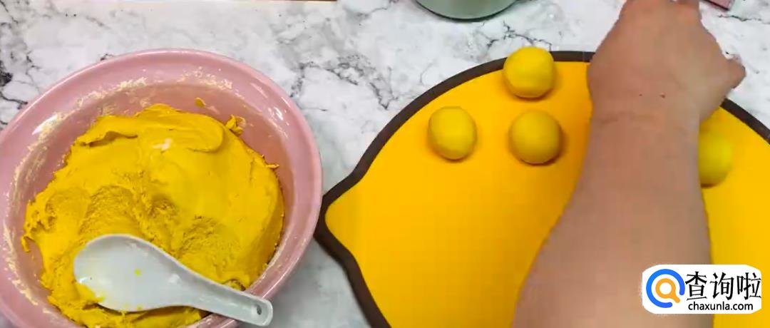 将南瓜泥用容器,或者直接用手搓成南瓜圆子。